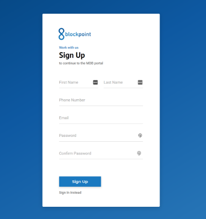 The portal is used to interact with MDB. Start on the Blockpoint Portal registration page